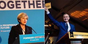 The startling image has Nigel Farage’s face photoshopped onto Theresa May, with the slogan ‘Vote Her, Get Him’.