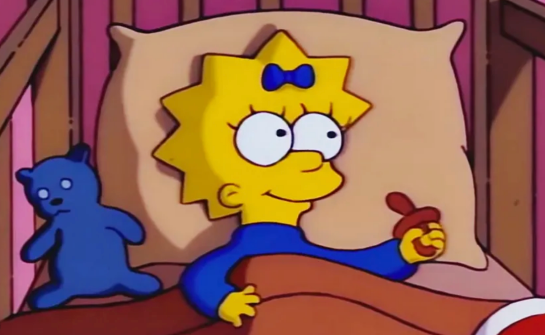 M - In that same episode, which very famous person provided the voice for Maggie's first word?