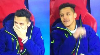 With Alexis Sanchez substituted during the second half, camera lenses were briefly trained on the Chilean as he watched the final moments of the game from the Arsenal bench.