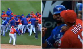 They got into a fistfight behind the bag after a hard slide by the Toronto slugger at Odor’s legs in the midst of a double play in the top of the eighth inning. Players from both teams rushed the field, and Odor shoved Bautista, then landed a punch to his face.