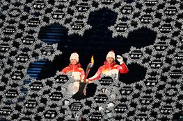 Cross-country skier Dinigeer Yilamujiang was one of two Chinese competitors to ignite the flame during the ceremony at the Bird’s Nest Stadium ahead of the start of the Winter Olympic Games.