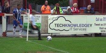 You can hear the laughter from behind the camera, but the defender does not look happy.