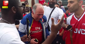 After today’s loss the guy on the left, a gatecrashing Manchester United fan, got into a heated debate with the Arsenal fan on the right.
