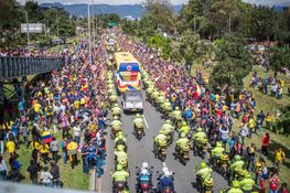 Crowds gathered on the side of roads in the capital city as the team’s bus travelled to the El Campin Stadium for an official ceremony, where they were greeted by a full capacity stadium of proud fans.