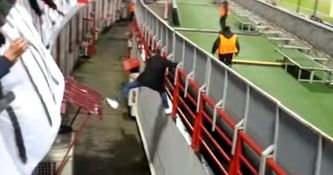 Not this Russian supporter, who managed to escape the long arm of the law with some ingenious assistance from the crowd in the stands…