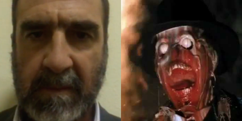 We open on Eric Cantona. The man loved by many for his philosophical musings and breathtaking football skill. A man whose face prompts many to smile upon seeing it. It’s hard not to notice though that he has a worrying look on his face. He’s about to show us something. No doubt about. At this stage we must assume he’s been kidnapped.