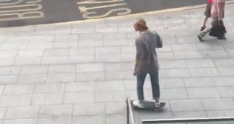 The video, posted online by Twitter user Chris Arrowsmith, purports to show the 20-year-old going along the footpath, confidently pushing himself along with his foot, as skateboarders tend to do.