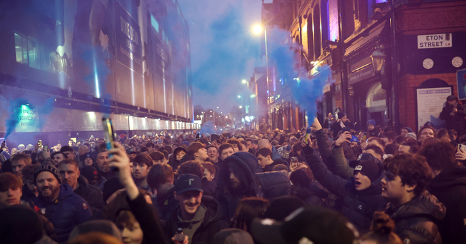 Everton host Liverpool in the last ever Merseyside Derby at Goodison Park and the atmosphere is already electric.