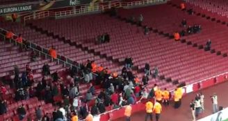 Koln fans fighting with stewards inside Emirates stadium. Group arrived in home end and fought their way into away section. pic.twitter.com/7RC17WZyz2
