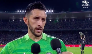 After the game, the Aston Villa ‘keeper was keen to celebrate and in the background of Colombia goalkeeper, Camilo Vargas’ interview could be seen running around the pitch with the Copa America trophy.