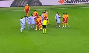 The referee was forced to stop Galatasaray’s Europa League second leg tie against Barcelona in the closing stages on Thursday night after Jordi Alba was hit with missiles.