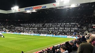 Featuring a famous quote from Toon legend Kevin Keegan, the black and white banner took aim at owner Mike Ashley’s stewardship of the club, which is seen by many on Tyneside and beyond as self-serving.