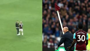 Two West Ham supporters then made their way on to the field, with Mark Noble confronting one of them, urging him to leave the pitch. Footage appeared to show another supporter waving a corner flag around above his head.