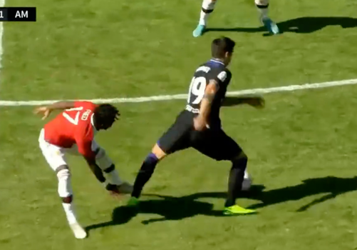 As United looked to level the scores, Fred – already on a yellow card – brought Alvaro Morata on halfway. The Brazilian then followed the challenge by standing on the former Chelsea striker, prompting an angry reaction from him and his Atleti teammates.