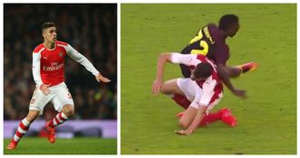Gabriel had to be stretchered off the field of play in tears after picking up what appears to be another serious injury. Although there’s no confirmation at this stage as to what the Brazilian has done, he instantly reaches for his lower left leg after the tackle.