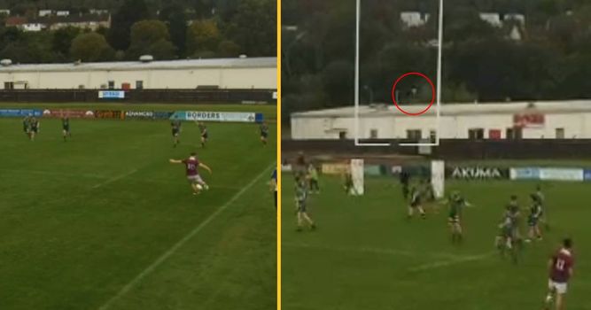 As a Hawick player went to celebrate the win by kicking the ball away – they accidentally sent it flying over the posts.