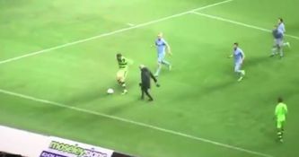 A Coventry fan invading the pitch tonight unhappy with his teams performance, they got beat 1-0 by Forest Green. pic.twitter.com/0xthJVTjkL