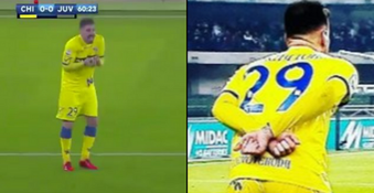 It was Chievo’s second red card of the game, after Samuel Bastien was sent off in the 37th minute. Cacciatore was pushed by Juve midfielder Kwadwo Asamoah in the box and had to receive medical assistance. The referee forced the defender to leave the pitch despite the player’s protests as he did not want his team to be reduced to nine men., which seems strange given what he did next.