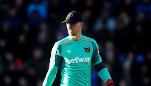 It was a sunny afternoon at New Meadow, so much so that Hart found himself in need of a cap to shield his eyes throughout the first half. Having not brought his own, one of the West Ham supporters came to the rescue.