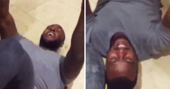 This is hilarious footage of a grown man being dragged around the floor as he realises that he has reached the pinnacle of domestic competition. Priceless…