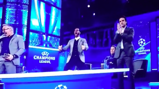 Love the @btsportfootball studio celebrations, @rioferdy5 going nuts @GaryLineker celebrating like crazy and no previous link to @ManUtd and former player @themichaelowen sitting dere arms folded, mute and sulking like someone stole his sweets. #mufc #OlesAtTheWheel