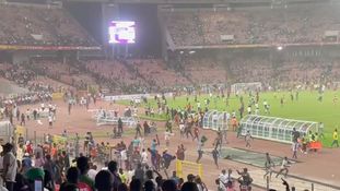 Following the full-time whistle, ugly scenes quickly ensued as several Nigeria fans proceeded to storm the pitch and smash up their own stadium.
