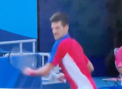 World No1 Djokovic was denied a shot at a Golden Slam as he was beaten by Alexander Zverev in the semi-finals on Friday. He was then beaten again in the mixed doubles at the same stage. Djokovic’s anger finally got the better of him today as he threw a racket into the stands before smashing another during his defeat at the hands of Busta.