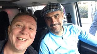 “So I was just about to pull off and leave and this security guard comes over, like all Men in Black with a City suit on and an earpiece and that. He said ‘are you going’, so I said ‘yeah’ and he goes ‘you couldn’t give Pep a lift home could you? So I said what? He said ‘could you give Pep a lift home? I can’t get hime out.’