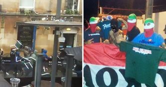 At first it was assumed that local City supporters were exchanging blows and hurled chairs with the Spanish visitors, but now it seems that Polish football hooligans are to blame.