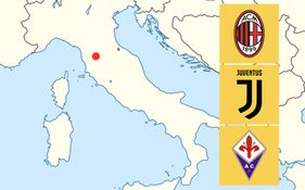 15 pictures, all showing part of a European map with a small red dot on each one. All you have to do is work out which of the three European clubs pictured below them play their home games where the red dot is located.