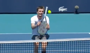 A tennis star left the crowd lost for words as he used the handle of his racket to pull off an unbelievable trick shot in the Miami Open.