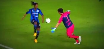 Playing for Mexican club Queretaro, the 35-year-old Brazilian flicked the ball out of the hands of Santos Laguna goalkeeper Agustin Marchesin and tapped it into the empty net.