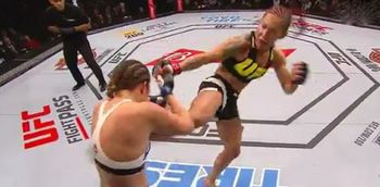 Cyborg dropped her to the mat with a straight right following a blistering flurry and referee Eduardo Herdy intervened quickly to award Cyborg the TKO victory at 1:21 of the first round.