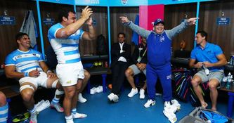 Diego Maradona Leads The Celebrations in The Argentina Dressing Room After Today’s Rugby World Cup Win Over Tonga… pic.twitter.com/plQx12TXzW