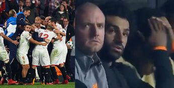 WATCH: Mo Salah sums up the feelings of all Liverpool fans with reaction to Sevilla’s late equaliser