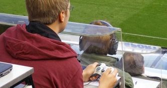 When you first see it, it looks like a strange guy pretending to play FIFA in the press box at Newcastle vs Arsenal.