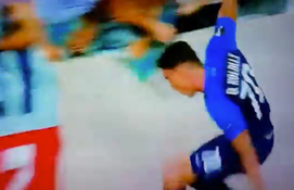 Although Kololli vanished from view for a few seconds, he later reemerged unscathed from his fall and was unable to see out the remaining half an hour of the game.
