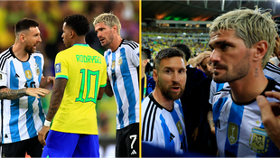 Emi Martinez launches himself at policeman during mass brawl at Brazil vs Argentina