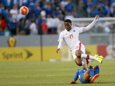 Canadian striker Cyle Larin blasts the ball into row Z after rounding the keeper (Vine)