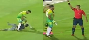 Watch Moroccan goalkeeper ruthlessly deal with pitch invader…then given red card (Video)