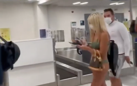 Woman walks through airport wearing just bikini – and a face mask