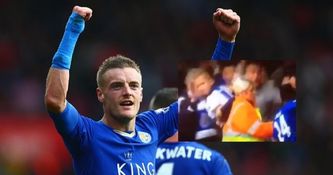 Leicester fan almost drops his kid as he celebrates Vardy’s equaliser (Video)