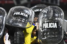Boca Juniors players helped off pitch by riot police after Superclásico win